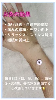 ◎セルフケアのポイント お灸でじんわり温めるのが効果的。ツーンと響くような感覚があれば、しっかりツボに届いています。