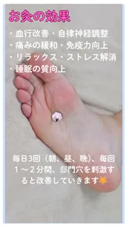 頭に上りすぎた気を下へ引き戻し、心身を安定させるツボとして知られています。